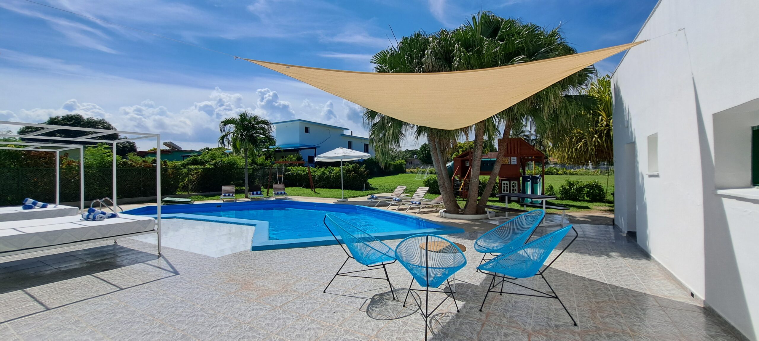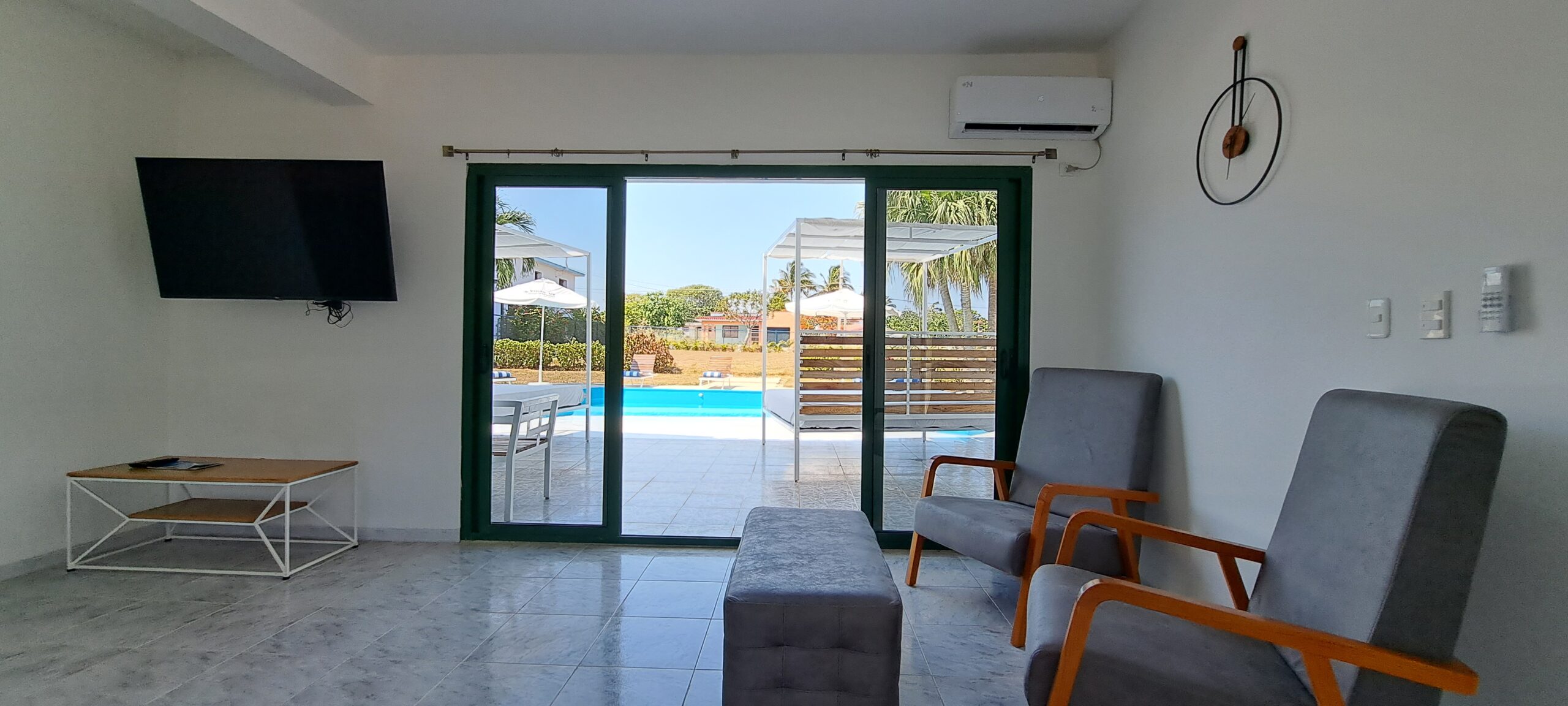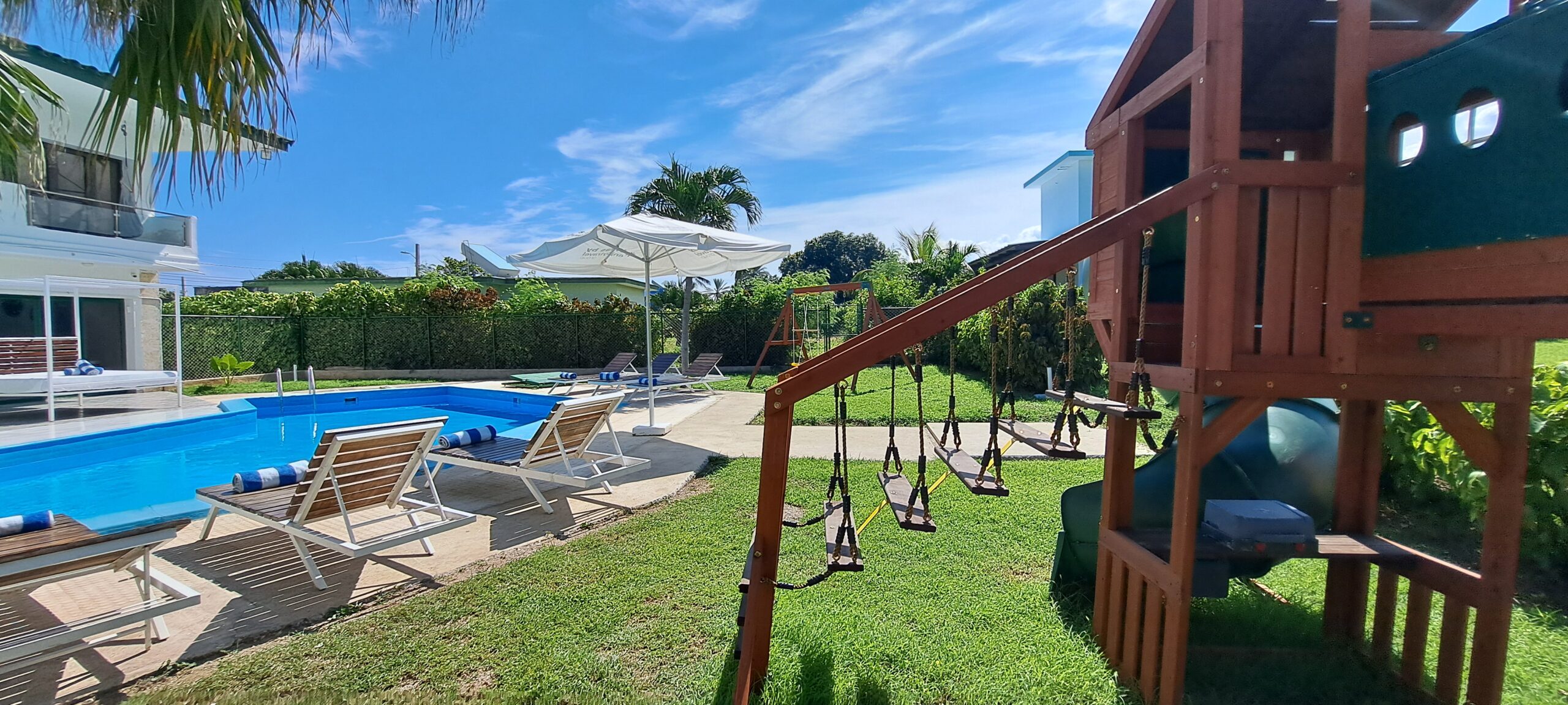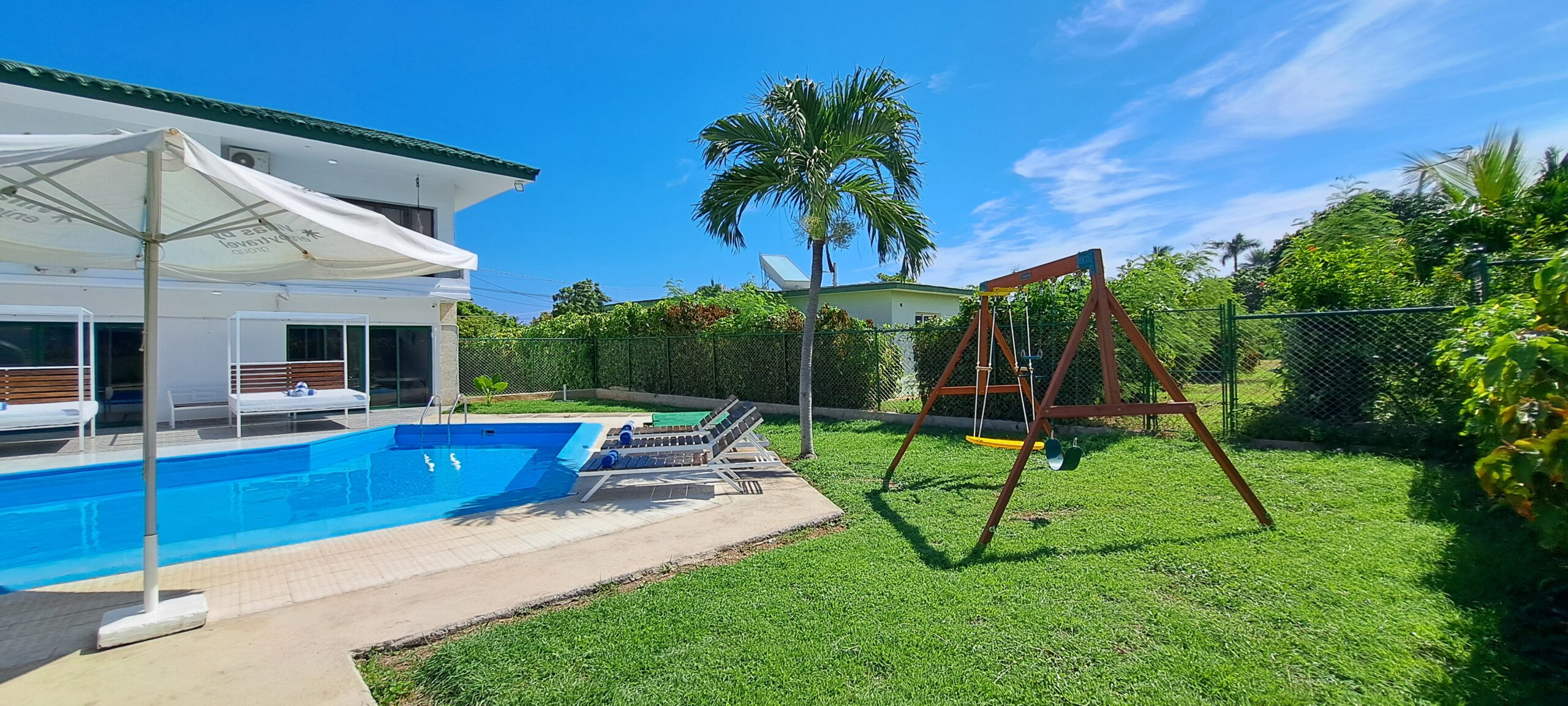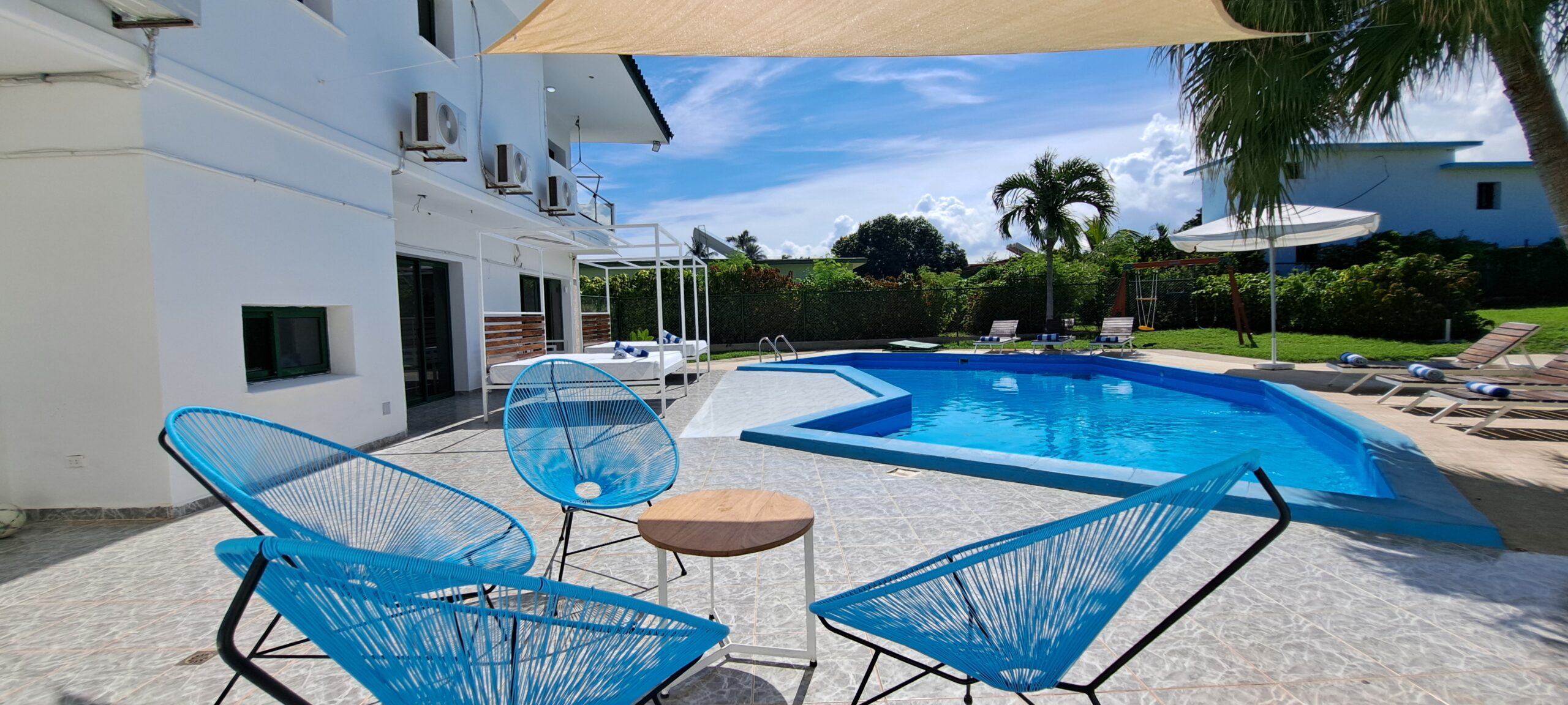 En esta Villa, ademas de la cercanía a la playa, tiene piscina propia, con tumbonas y camas balinesas, baño exterior en la piscina y bar.
