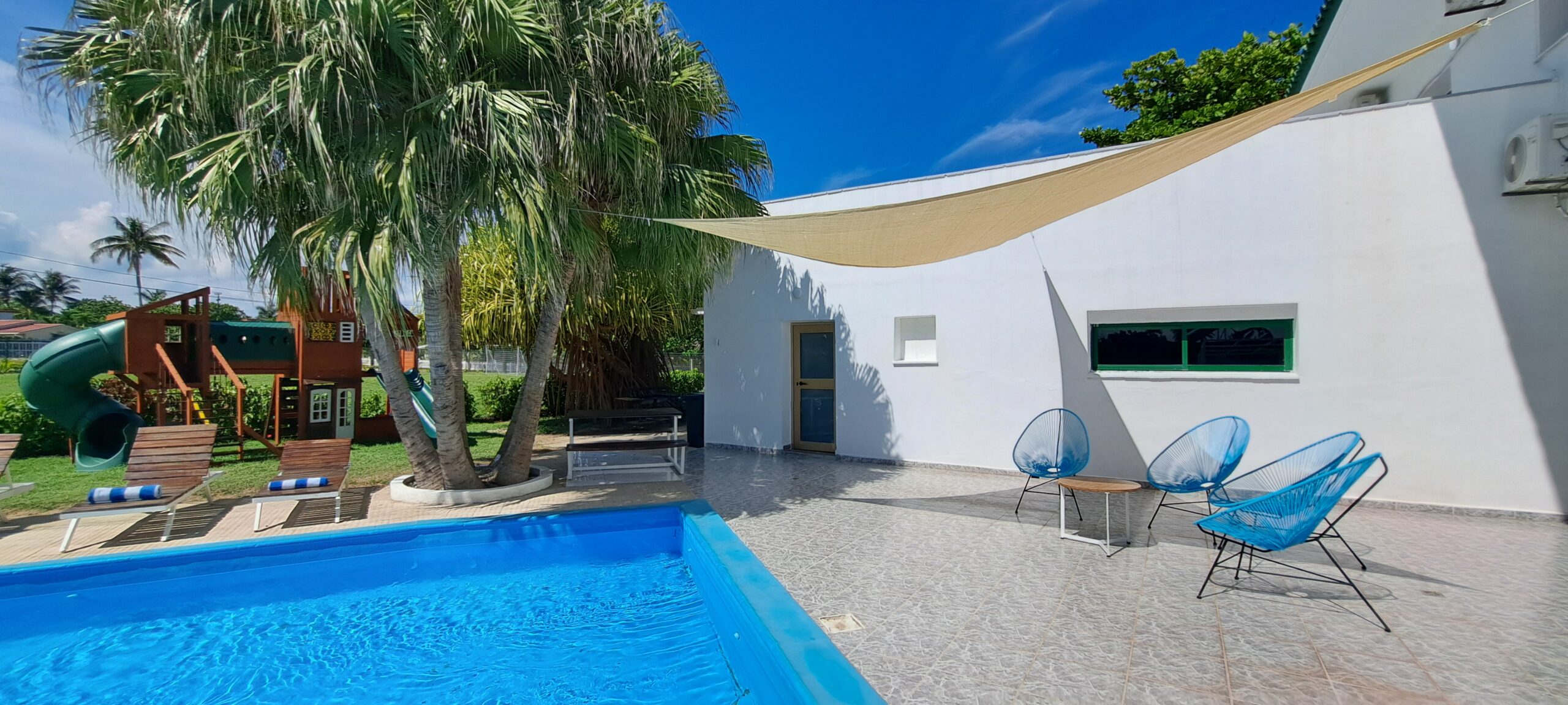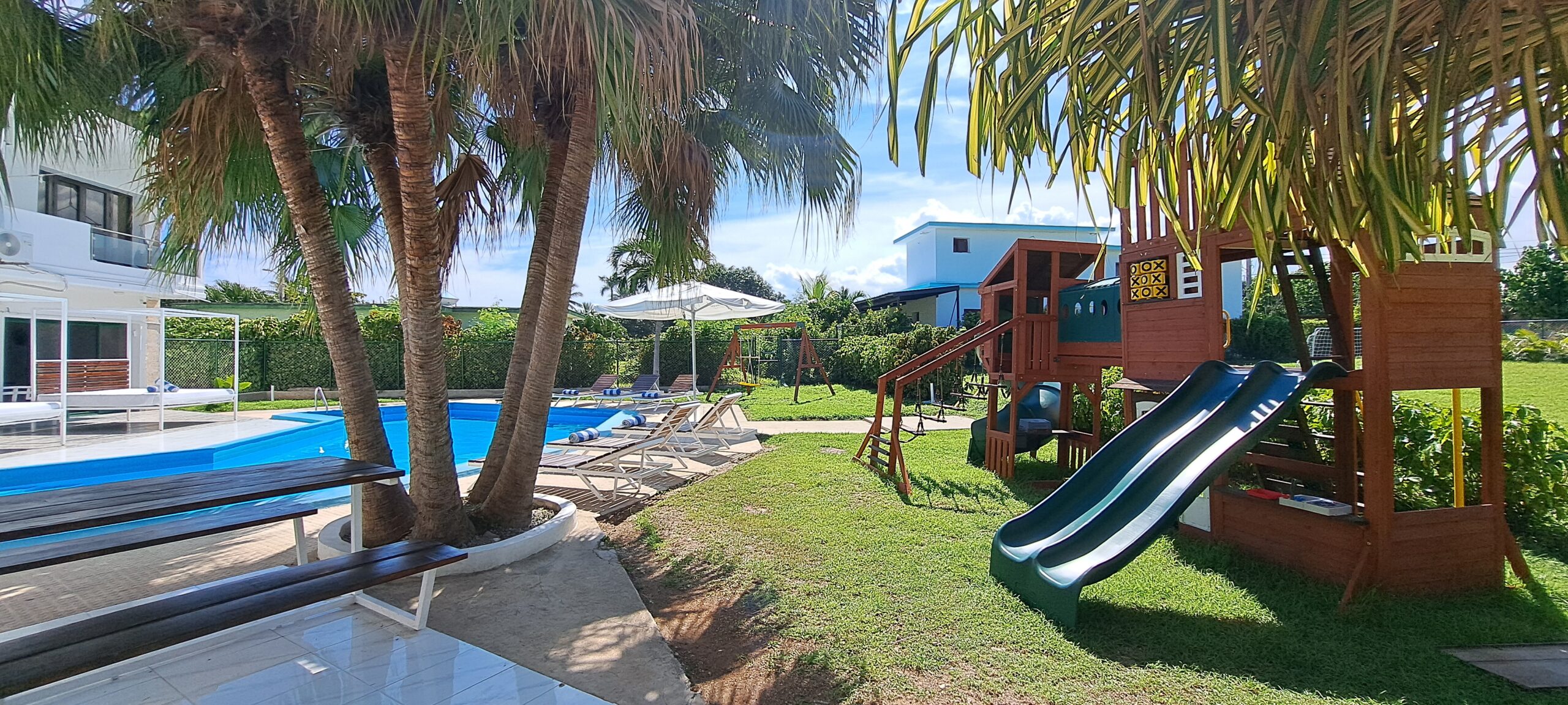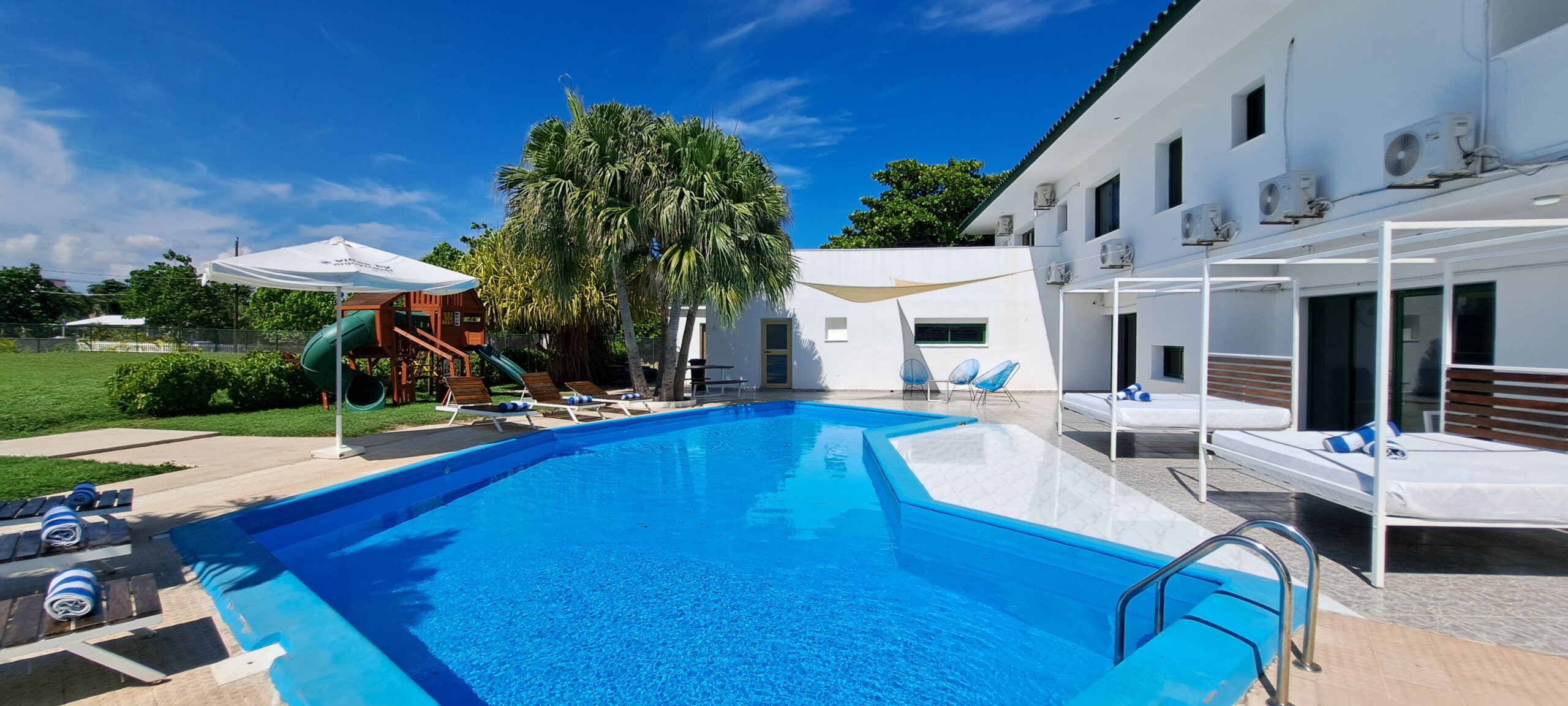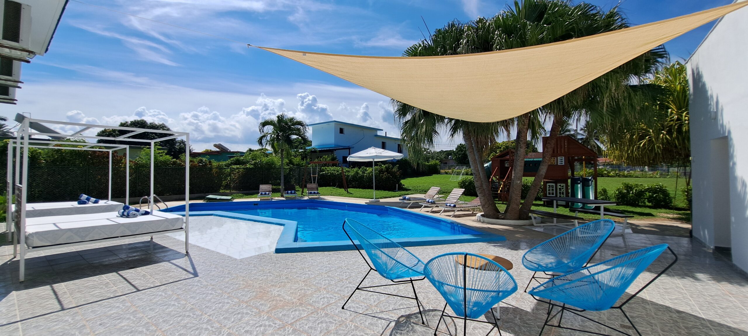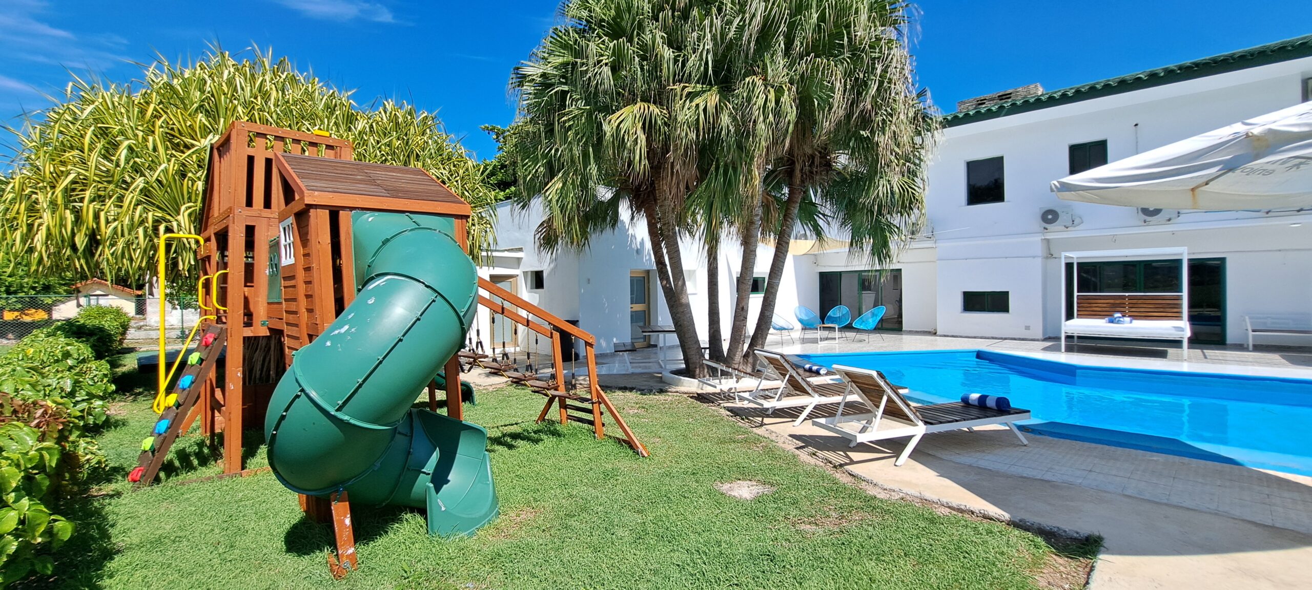 En esta Villa, ademas de la cercanía a la playa, tiene piscina propia, con tumbonas y camas balinesas, baño exterior en la piscina y bar.