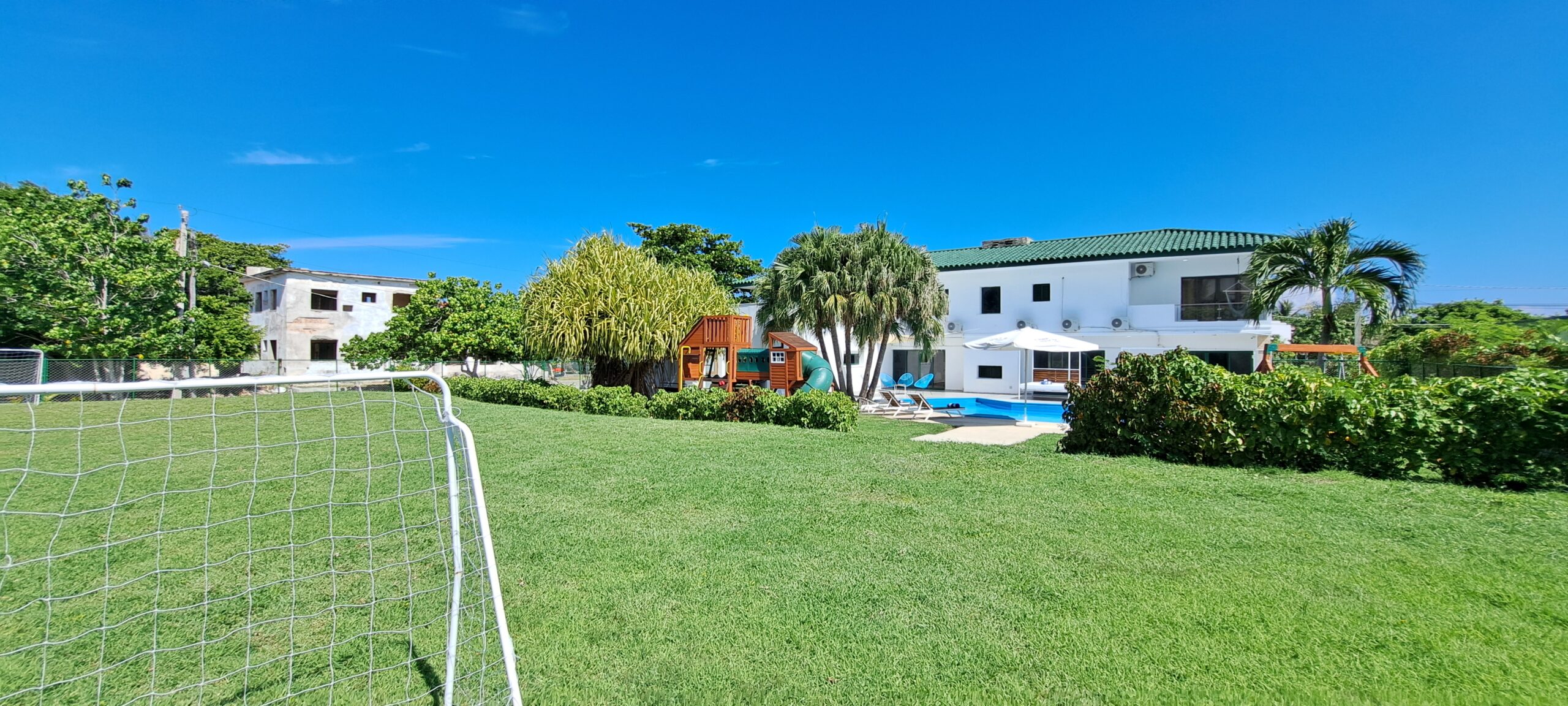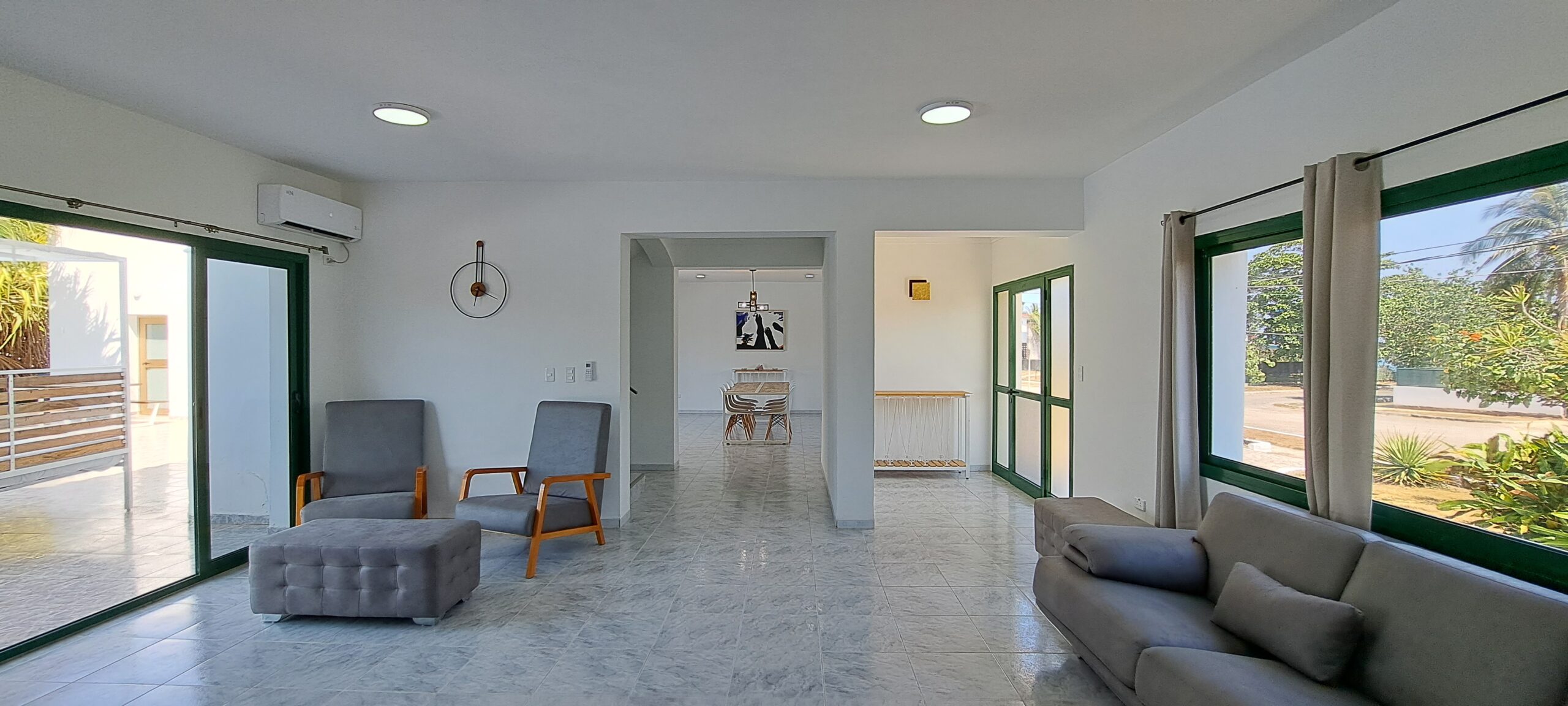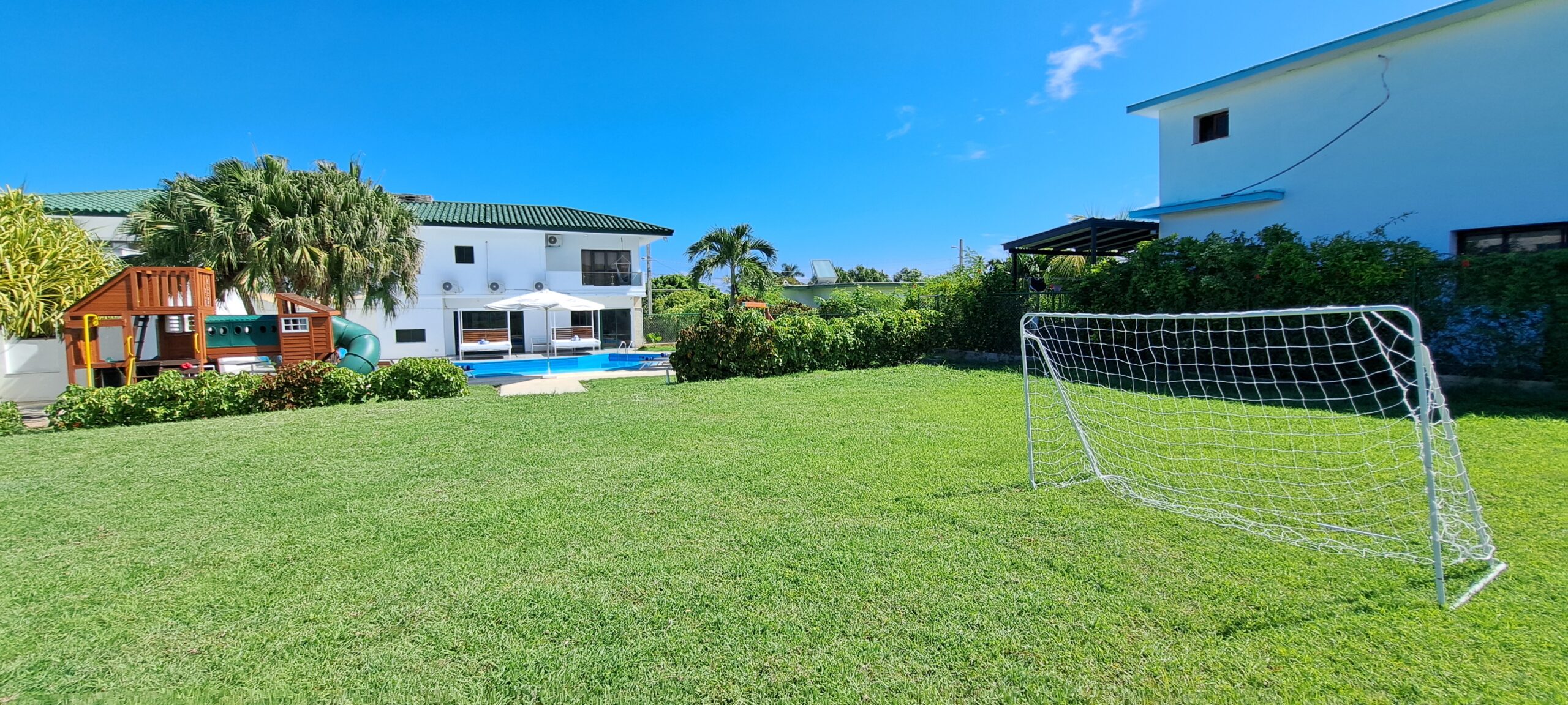 Garaje con puertas automáticas para 2 autos.Cámaras de seguridad en todo el perímetro de la casa.Disponible lencería blanca para las habitaciones y toallas de piscina.Cocina completamente equipada para uso de los huéspedes: olla reina arrocera, cafetera eléctrica expreso, batidora, microwave, cocina de gas de balón, refrigerador, nevera, freidora eléctrica, utensilios de cocina.En el área de la piscina dispone de horno BBQ, comedor al aire libre, camas balinesas y tumbonas.TV por cable en cada habitación, exhibidor de vinos, climatización en toda la casa con AC tipo split.