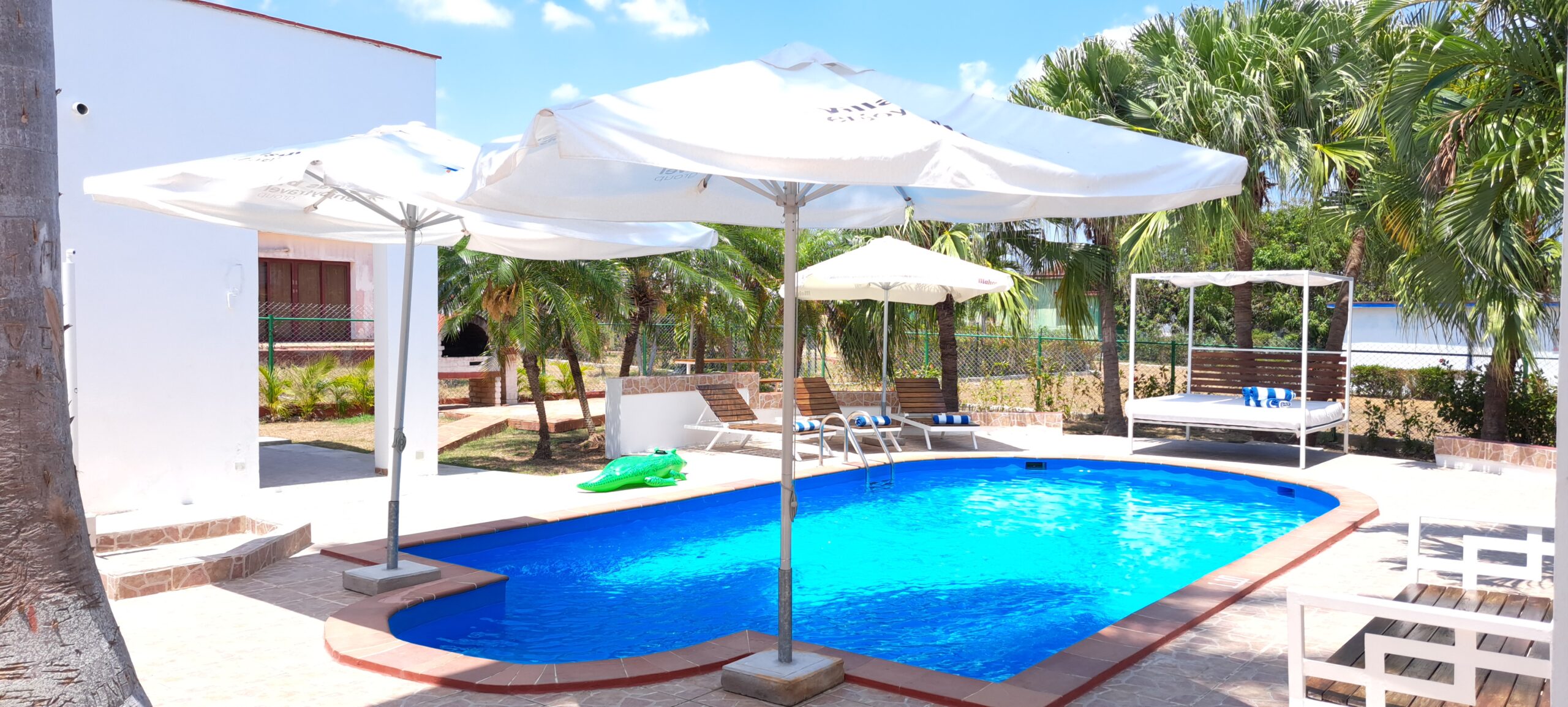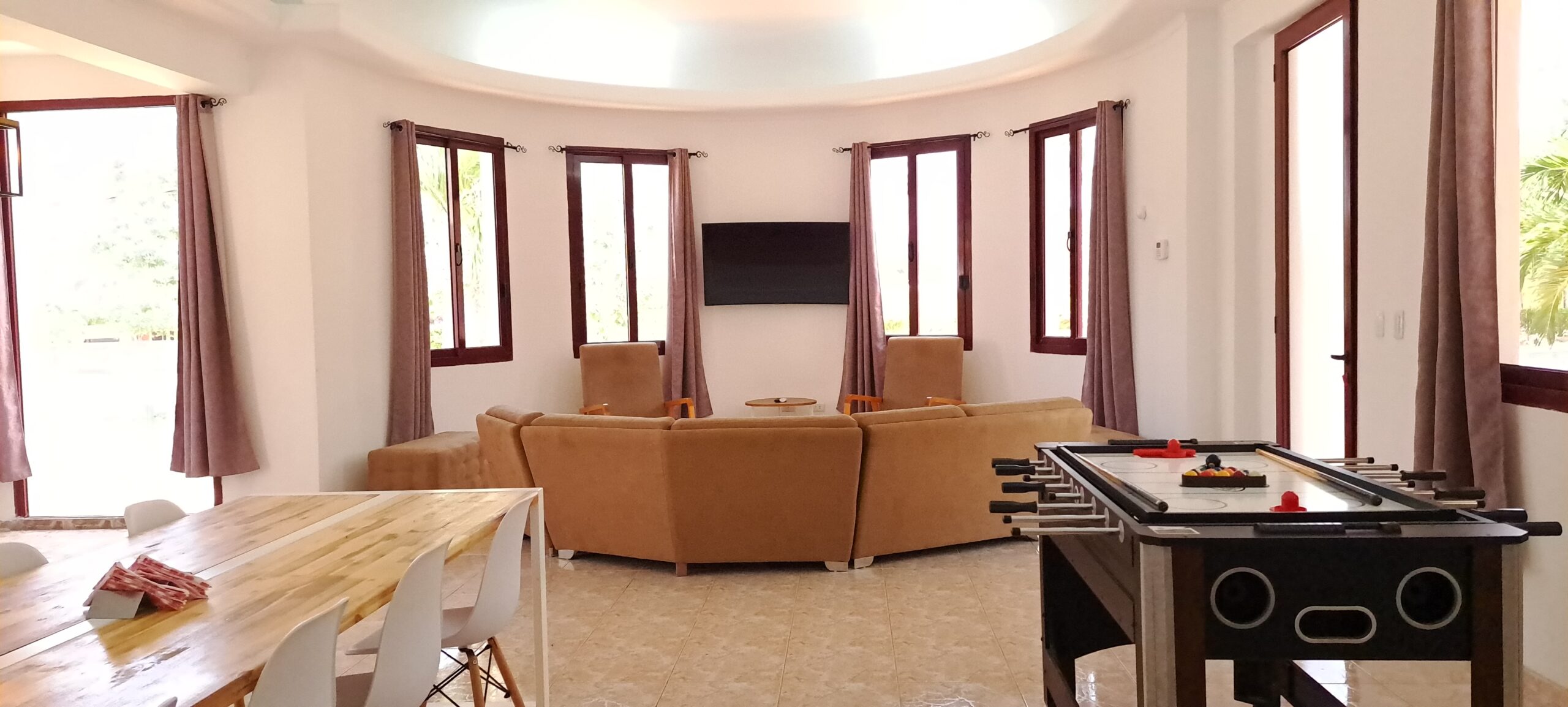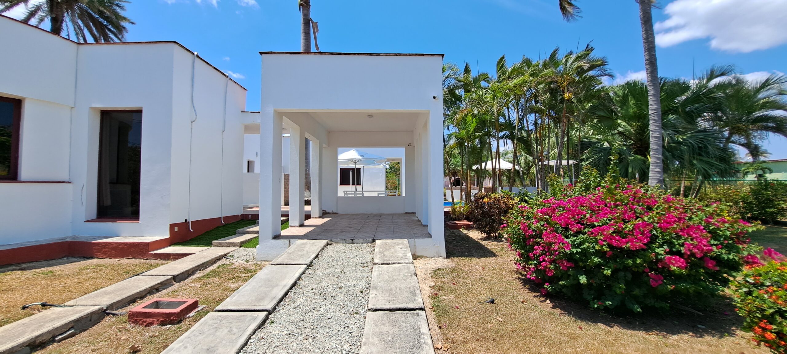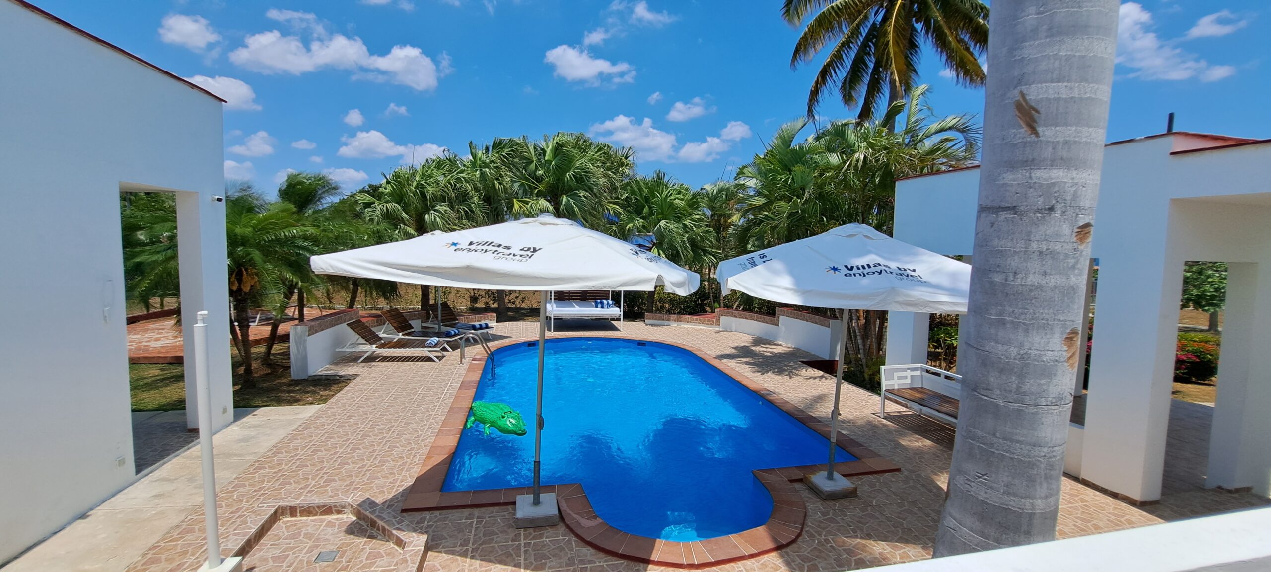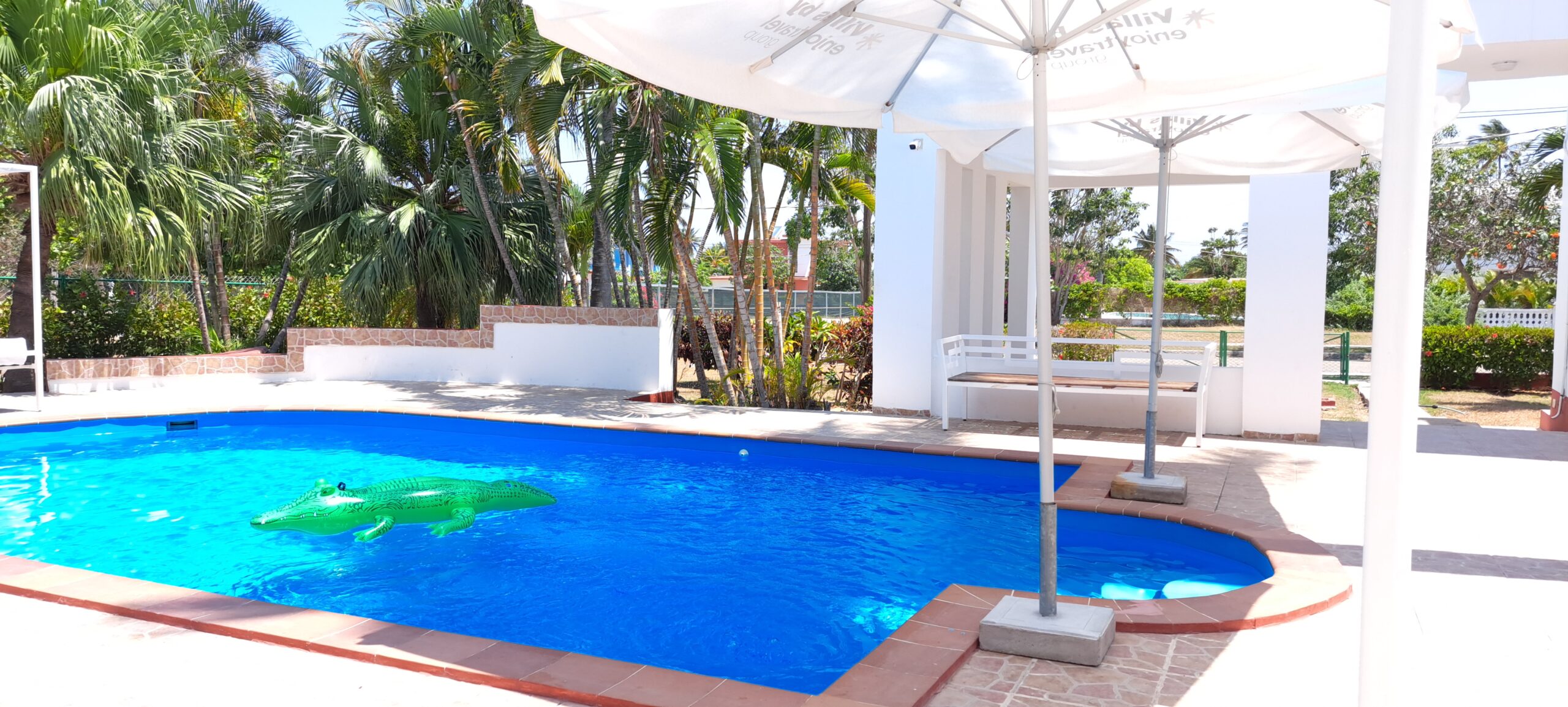 La propiedad, tiene capacidad hasta 7 personas, con alojamiento en 3 habitaciones: dos dobles y 1 triple, con amplios espacios y confort. Cada habitación con baño en suite.En esta Villa, ademas de la cercanía a la playa, tiene piscina propia, con tumbonas y cama balinesa, baño exterior en la piscina.Garaje carpoch para 2 autos.ámaras de seguridad en todo el perímetro de la casa.Disponible lencería blanca para las habitaciones y toallas de piscina.Cocina completamente equipada para uso de los huéspedes: olla reina arrocera, cafetera eléctrica expreso, batidora, microwave, cocina de gas de balón, refrigerador, nevera, freidora eléctrica, utensilios de cocina.En el área de la piscina dispone de horno BBQ, comedor al aire libre, cama balinesa y tumbonas.TV por cable en el salón y climatización en toda la casa con AC tipo split.