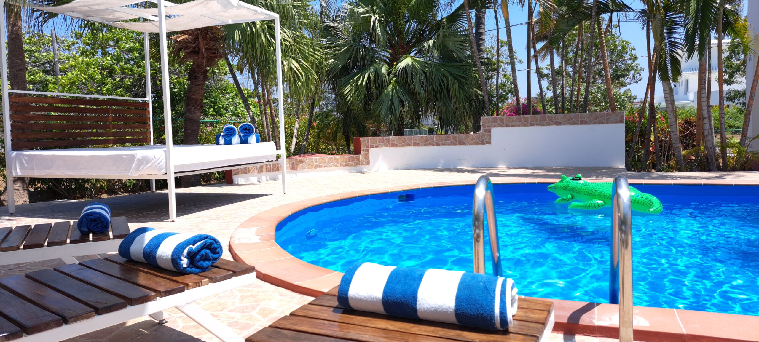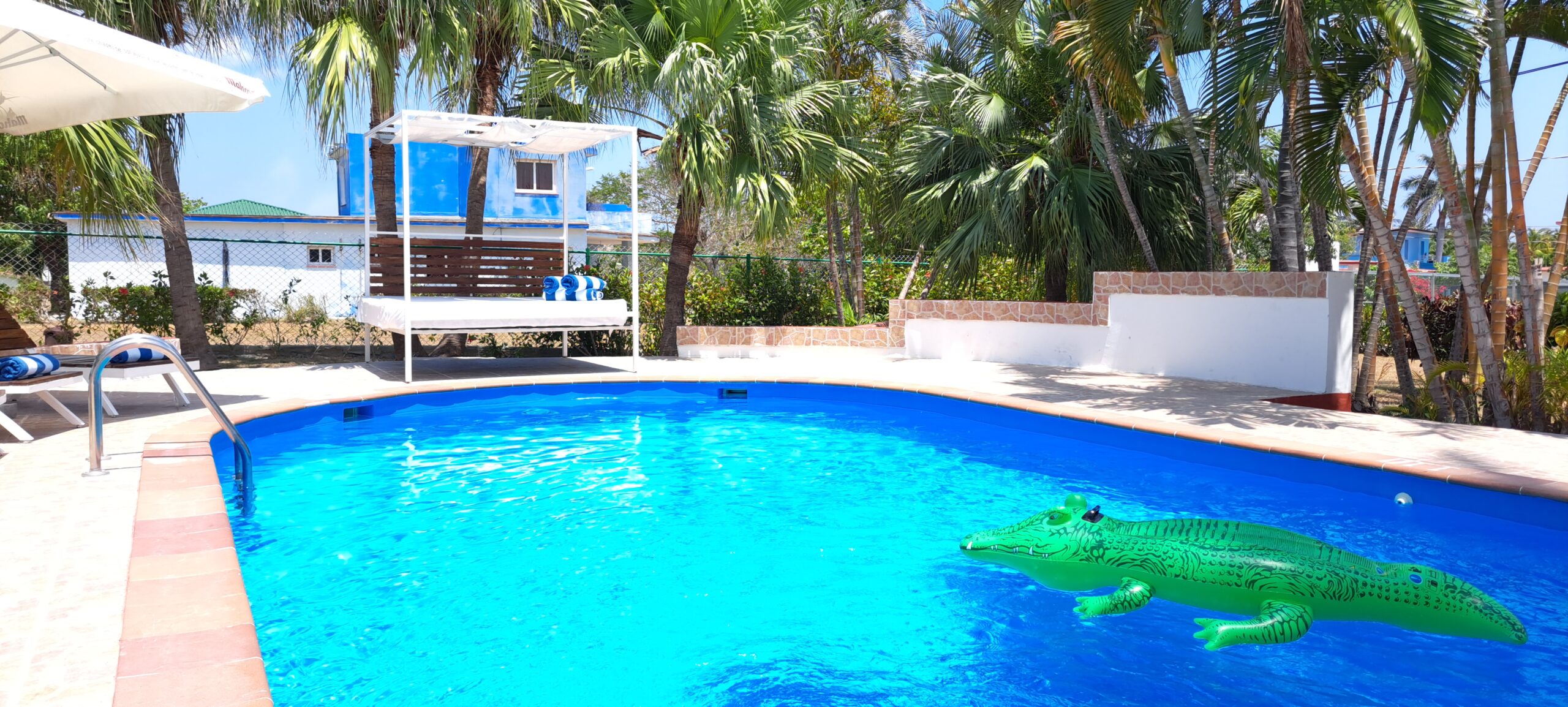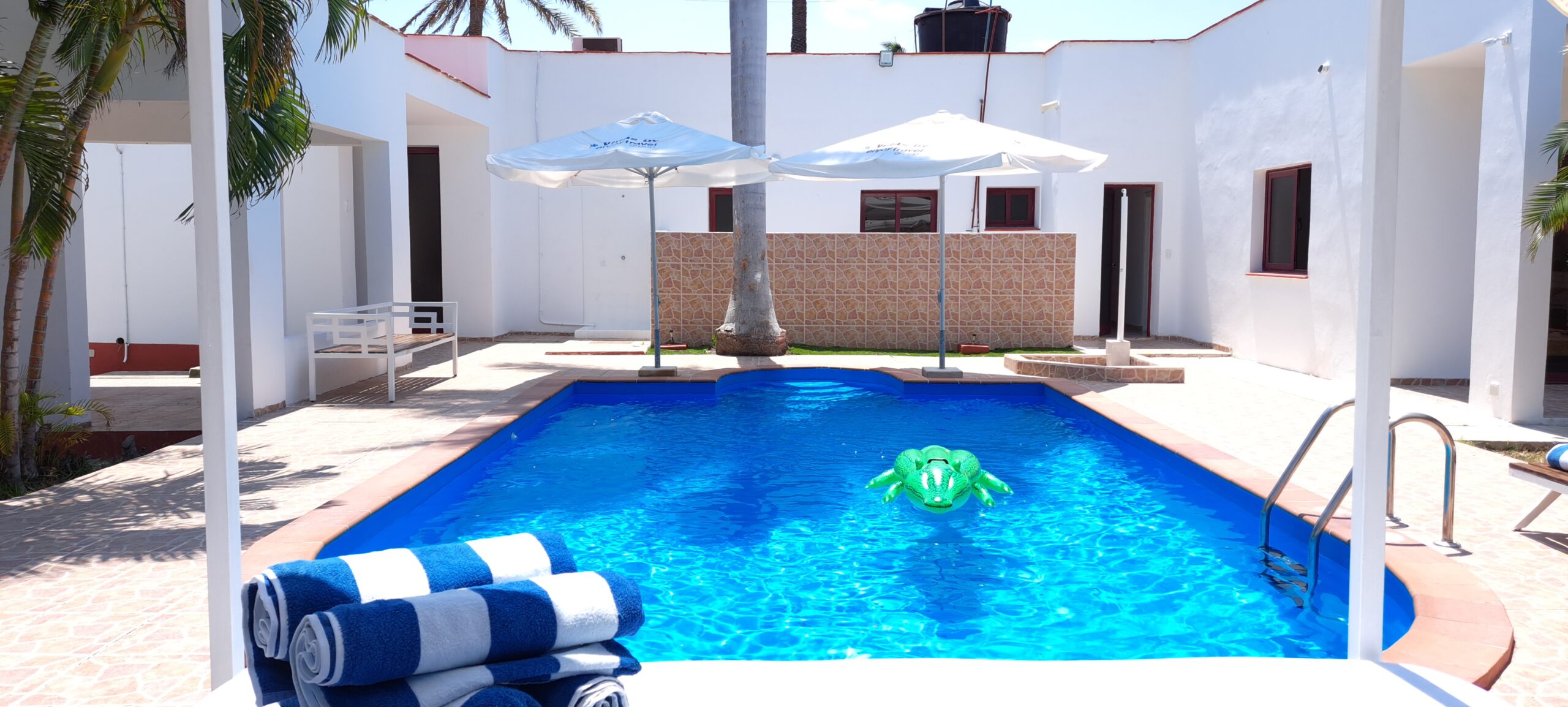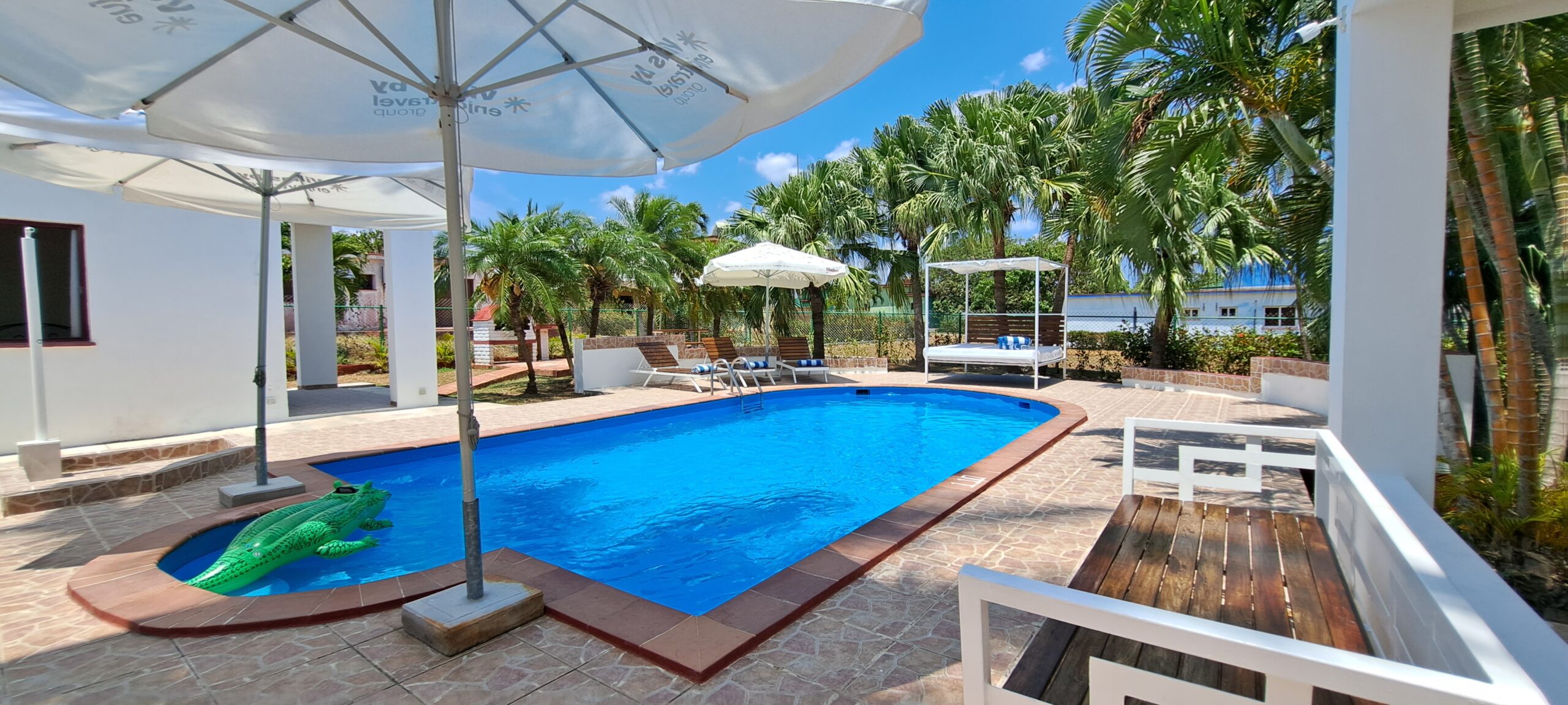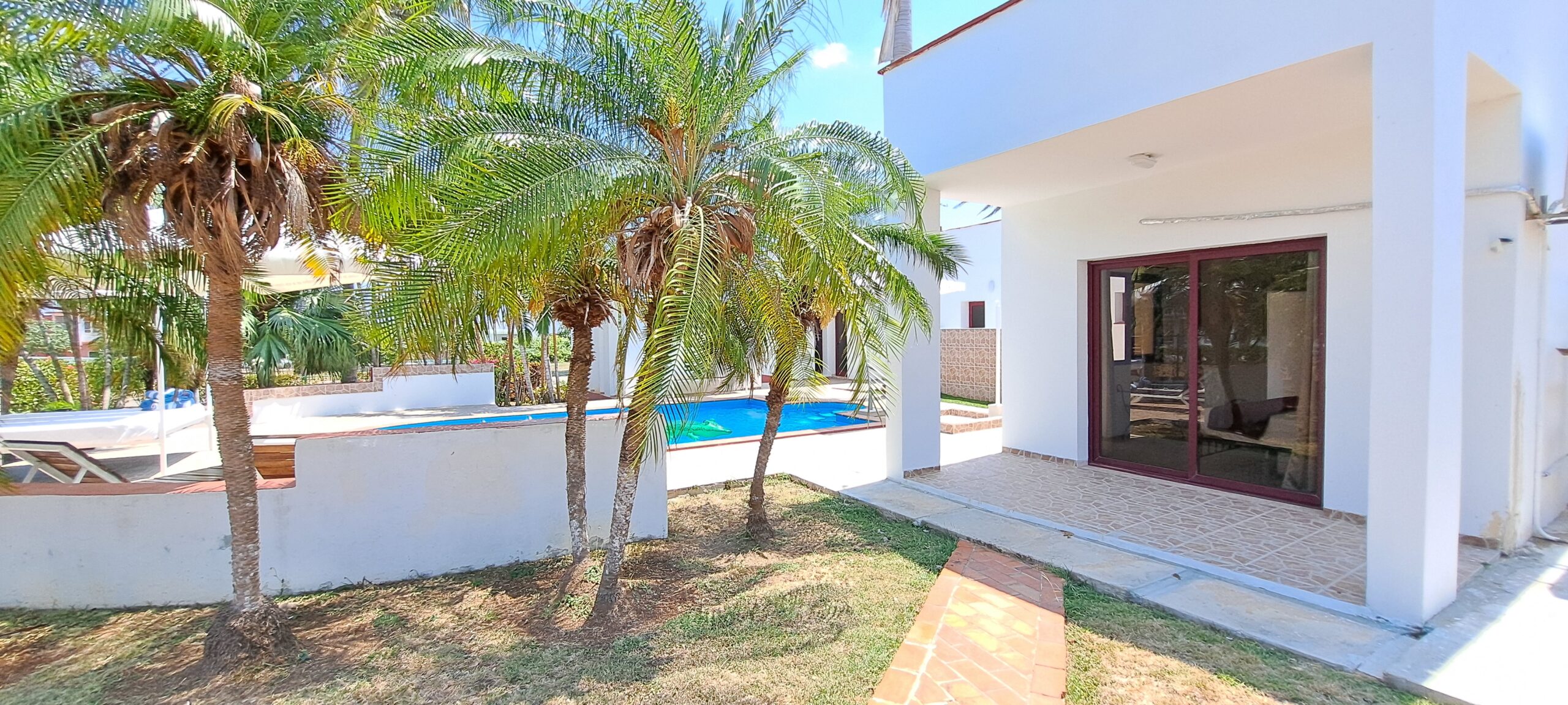 La propiedad, tiene capacidad hasta 7 personas, con alojamiento en 3 habitaciones: dos dobles y 1 triple, con amplios espacios y confort. Cada habitación con baño en suite.En esta Villa, ademas de la cercanía a la playa, tiene piscina propia, con tumbonas y cama balinesa, baño exterior en la piscina.Garaje carpoch para 2 autos.ámaras de seguridad en todo el perímetro de la casa.Disponible lencería blanca para las habitaciones y toallas de piscina.Cocina completamente equipada para uso de los huéspedes: olla reina arrocera, cafetera eléctrica expreso, batidora, microwave, cocina de gas de balón, refrigerador, nevera, freidora eléctrica, utensilios de cocina.En el área de la piscina dispone de horno BBQ, comedor al aire libre, cama balinesa y tumbonas.TV por cable en el salón y climatización en toda la casa con AC tipo split.