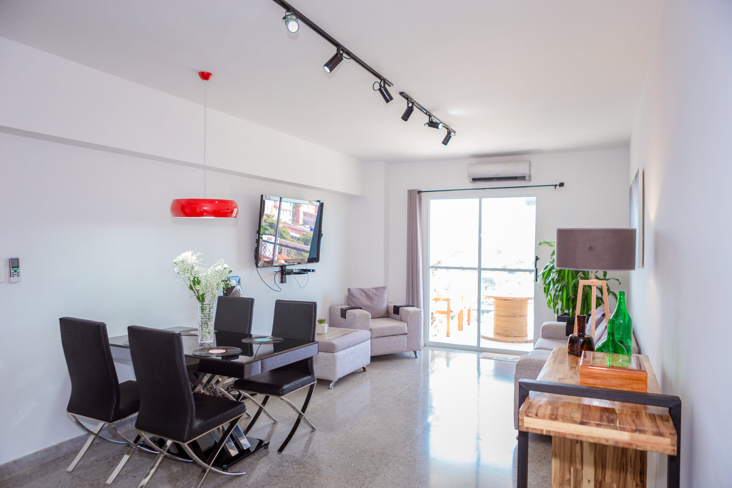 Disfrutarán un apartamento moderno, excelente ubicación, servicios de alto nivel, diseñado para garantizar que disfrute su estancia con todas las comodidades imprescindibles (acceso a WIFI, aire acondicionado, agua caliente, agradables camas King size); con el beneficio de una terraza al aire libre con vistas de la ciudad y mar a lo lejos, céntrica ubicación y . Cerca del Malecón, bares, restaurantes y avenidas principales.